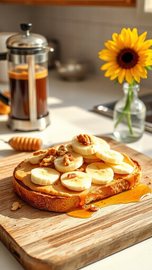 - Slice the ripe banana and arrange the slices on top of the peanut butter.