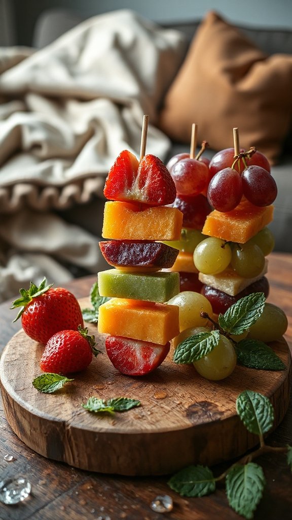 Fruit skewers are a vibrant and invigorating snack perfect for any movie night. These colorful kabobs can be made with a variety of fruits, allowing for a fun and healthy treat that is easy to assemble and enjoyable to eat. They provide a sweet contrast to savory snacks, making them an ideal addition to your movie night spread.