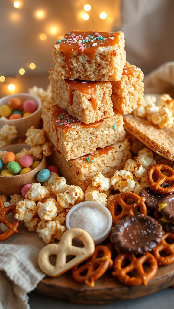 Sweet and salty rice crispy treats are a delightful twist on the classic dessert, combining the crispy texture of puffed rice cereal with the delectable flavors of chocolate and a touch of salt. These treats are perfect for movie night, providing a satisfying crunch and a hint of sweetness that pairs wonderfully with your favorite film.