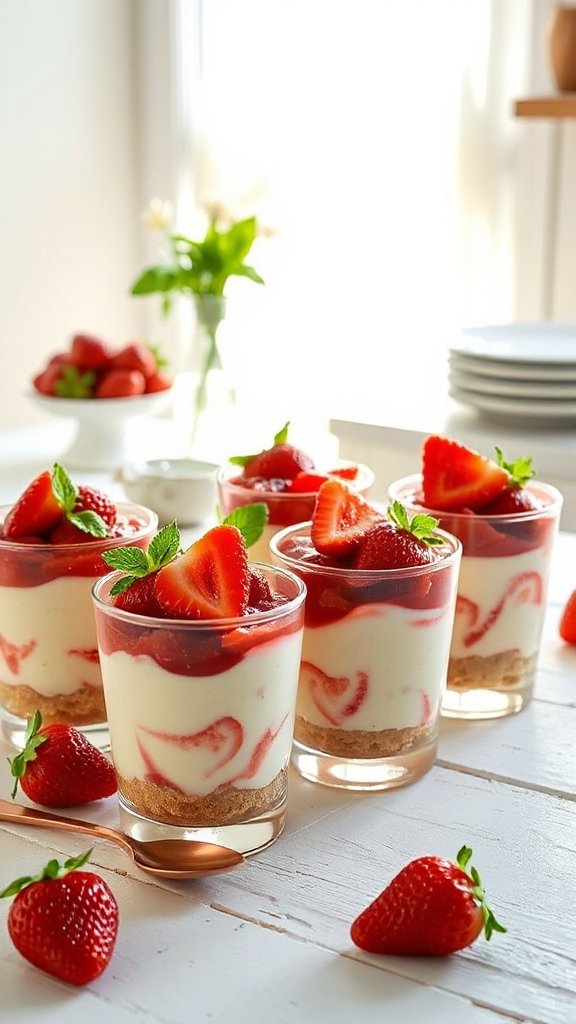 No-Bake Strawberry Cheesecake Cups are a delightful and invigorating dessert that combines the creamy richness of cheesecake with the sweetness of fresh strawberries. These individual servings are perfect for school treats, offering a fun and flavorful twist on traditional cheesecake without requiring any baking. Kids will love the strawberry topping, making these cups an enticing dessert option for warm days or special occasions.