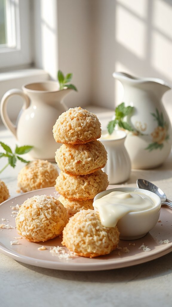 Coconut macaroons are a popular no-bake treat that offers a delightful blend of chewy coconut, sweet syrup, and chocolate drizzles. These bite-sized morsels are perfect for school treats, as they are simple to make and provide a delicious, satisfying snack. The combination of toasted coconut flavor with a hint of vanilla makes these macaroons a favorite among kids and adults alike.