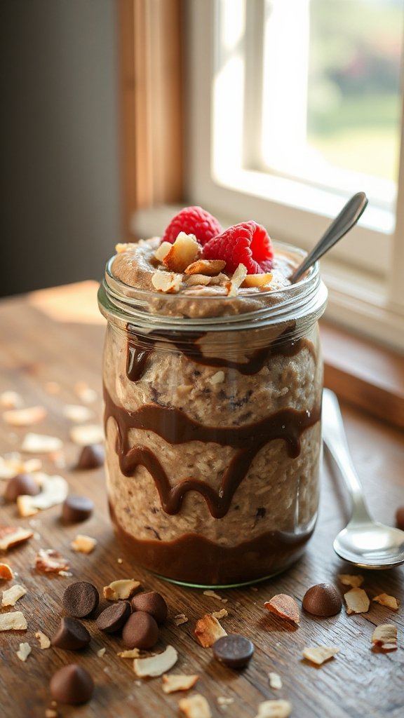 - In the morning, give it a good stir, top with shredded coconut (if desired), and enjoy your Chocolate Almond Joy Overnight Oats!