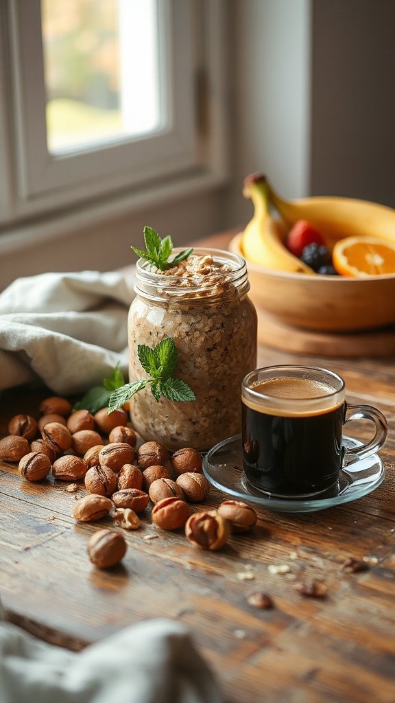 Espresso Hazelnut Overnight Oats is a rich and energizing breakfast option, perfect for coffee lovers looking to kick-start their day with a bold flavor. This delightful combination of creamy oats, robust espresso, and crunchy hazelnuts offers a smooth yet invigorating start to your morning routine. Easily prepared the night before, these oats are a convenient choice for busy days.