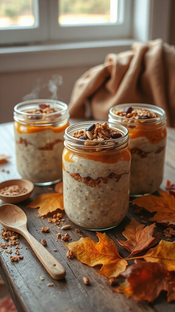 - In the morning, top with pecans or walnuts if using, give it a stir, and enjoy your cozy Pumpkin Spice Overnight Oats!