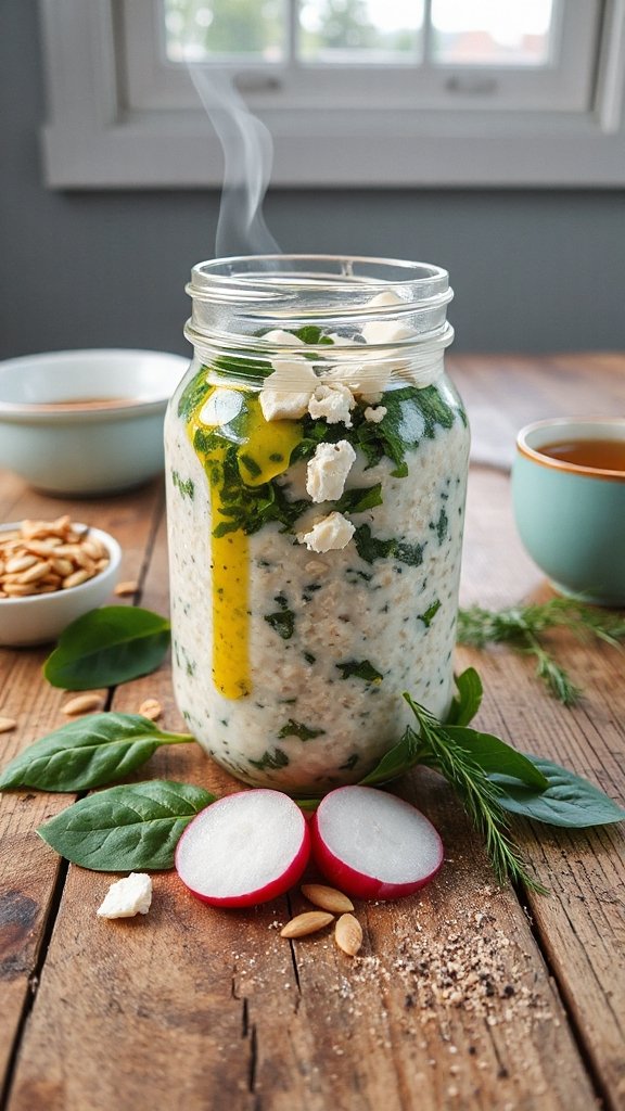 - In the morning, give it a quick stir and enjoy your Savory Spinach and Feta Overnight Oats!
