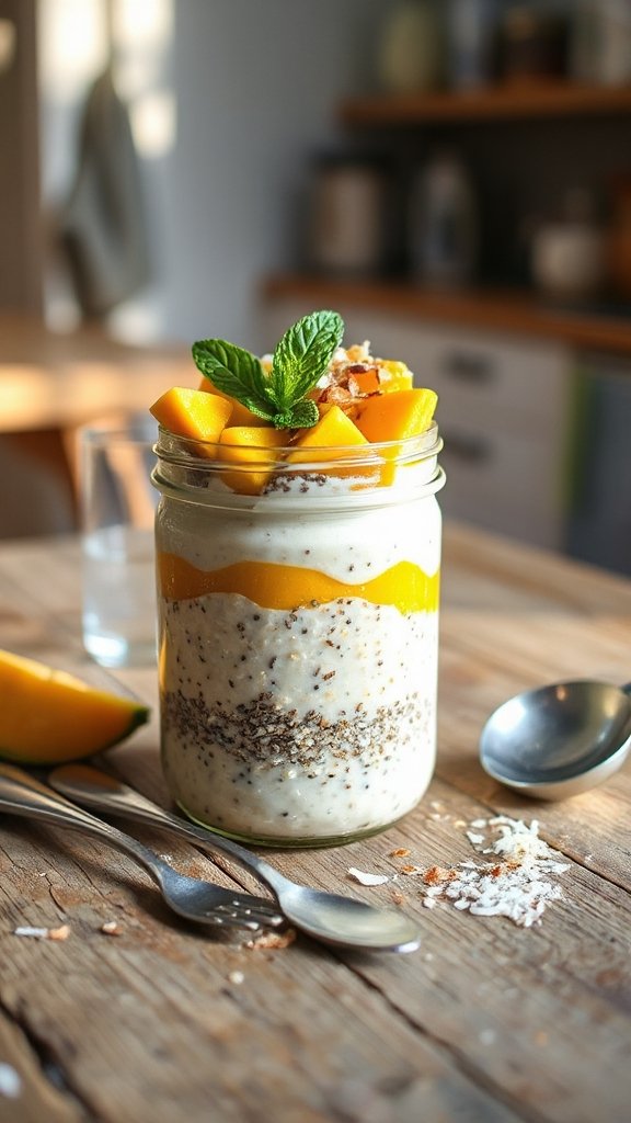 - In the morning, give the mixture a good stir and top it with additional mango or other fruits if desired. Enjoy your Chia Seed Mango Overnight Oats!