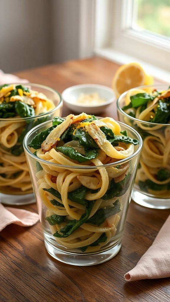 - Allow to cool slightly before serving. Enjoy your Lemon Garlic Spinach Fettuccine Cups!