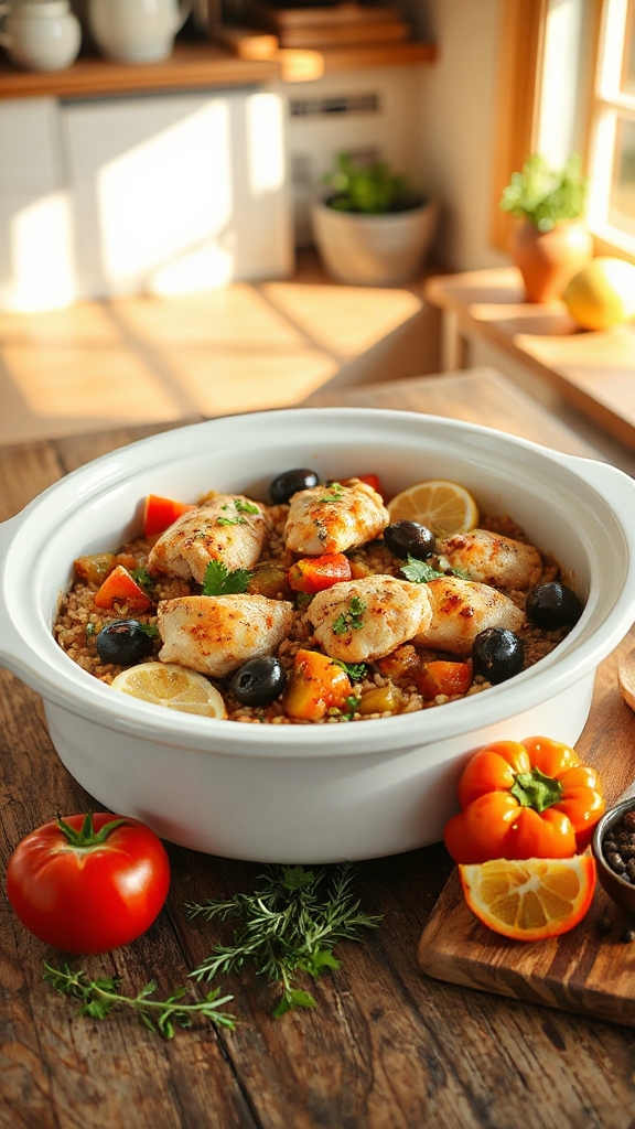 Mediterranean Chicken and Rice is a flavorful and aromatic dish that brings the essence of the Mediterranean cuisine to your dinner table. It’s perfect for busy back-to-school nights, as you can set it in the crockpot, allowing the ingredients to meld and cook gradually until you are ready to serve. Packed with tender chicken, rice, and a medley of Mediterranean spices, it is both satisfying and easy to prepare.