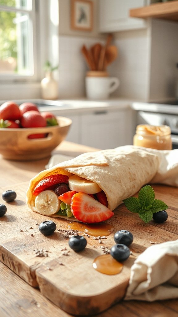 Fruit and nut butter wraps are a quick, versatile breakfast option perfect for school mornings. These wraps are nutritious, satisfying, and can be easily customized to incorporate your child’s favorite fruits and flavors. Using whole grain wraps or tortillas, you can spread a generous layer of nut butter and add a variety of fruits for a well-rounded meal that’s ready to eat on the go.