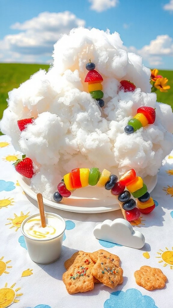 - Spread cream cheese on one side of each cloud-shaped bread piece, then sprinkle with edible glitter or sprinkles for a magical touch.
