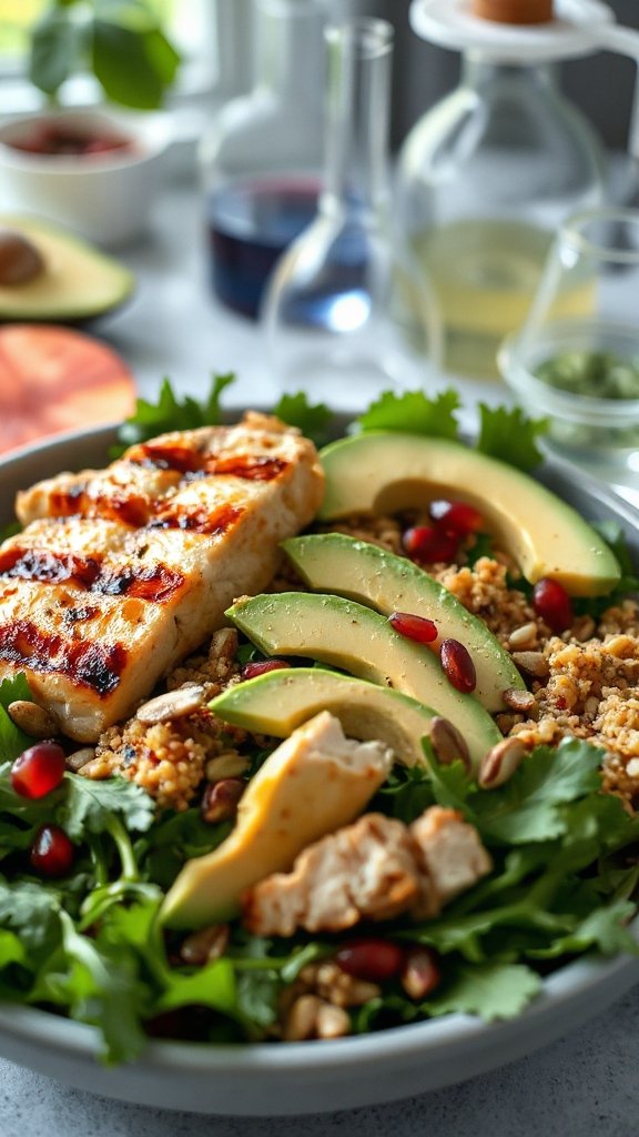 - Top the quinoa mixture with sliced grilled chicken. Serve immediately and enjoy your nutritious bowl!