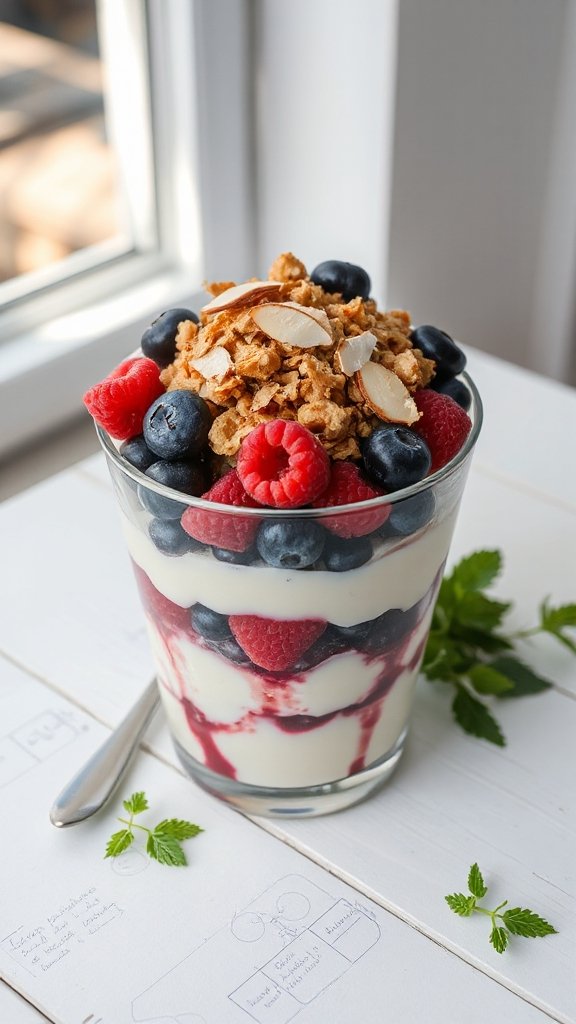 The Greek Yogurt Parfait with Granola is a delightful and healthy meal option that is perfect for a quick and energizing lunch in a laboratory setting. This dish layers creamy Greek yogurt with crunchy granola and fresh fruits, providing a delicious balance of protein, fiber, and essential nutrients to keep you fueled through your workday.
