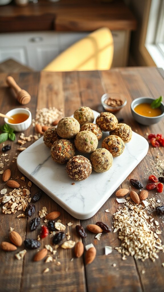 - Place the energy balls in the refrigerator to chill for about 30 minutes, allowing them to set.