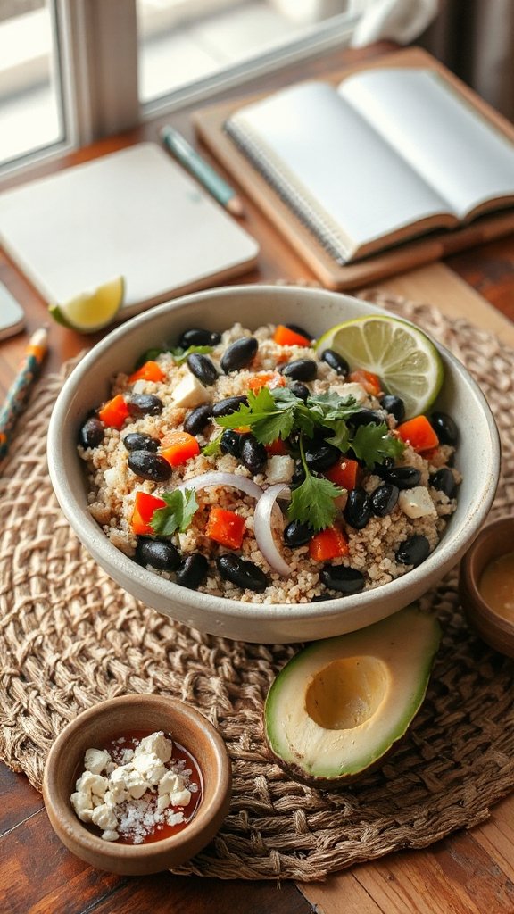 Quinoa and black bean salad is a hearty, nutritious option for back-to-school lunches that is both filling and packed with flavor. This colorful dish combines protein-rich quinoa and black beans with fresh vegetables, making it a satisfying meal that can be prepared in advance and enjoyed cold or at room temperature.