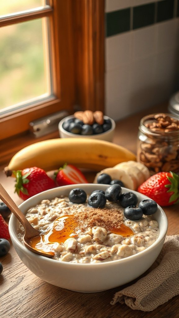 Oatmeal is a fantastic slow-releasing energy source for athletes, making it an ideal post-workout meal to help with recovery and keep you fueled for the day. It’s packed with fiber, vitamins, and minerals, ensuring you stay satisfied for longer. Below is a simple and hearty recipe for a delicious Oatmeal Bowl, topped with nutritious ingredients to enhance its energy-packed benefits.