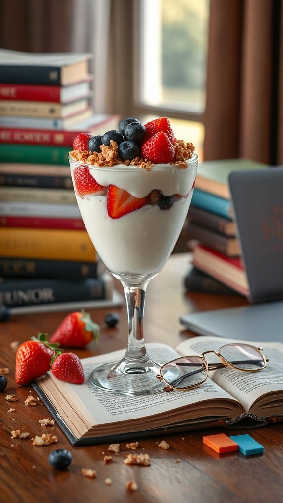 Greek yogurt parfaits are a delicious and nutritious option for a study session fuel. This tasty dish layers creamy Greek yogurt with a variety of fruits, granola, and a drizzle of honey, making it both satisfying and invigorating. It’s an ideal snack to keep you energized while you tackle your homework, providing a good balance of protein, fiber, and natural sweetness.