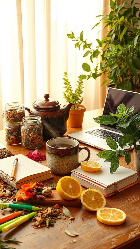 - Add sweetener or lemon/herbs if desired, stir, and enjoy your herbal tea while studying!