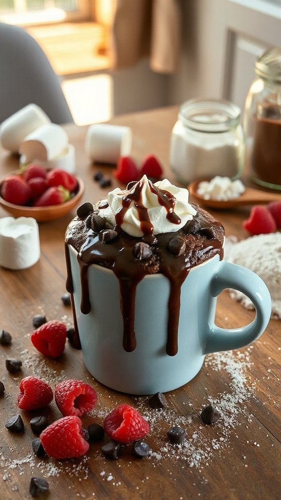- In a microwave-safe mug, combine the all-purpose flour, sugar, cocoa powder, baking powder, and salt.
