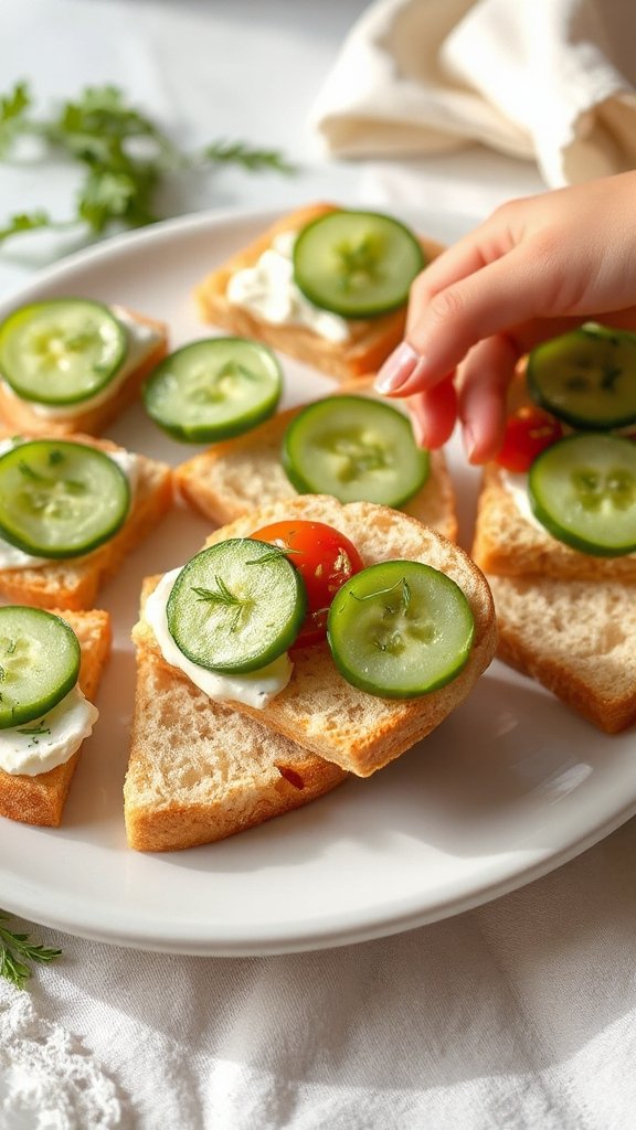 - Arrange the cucumber bites on a serving platter and enjoy!