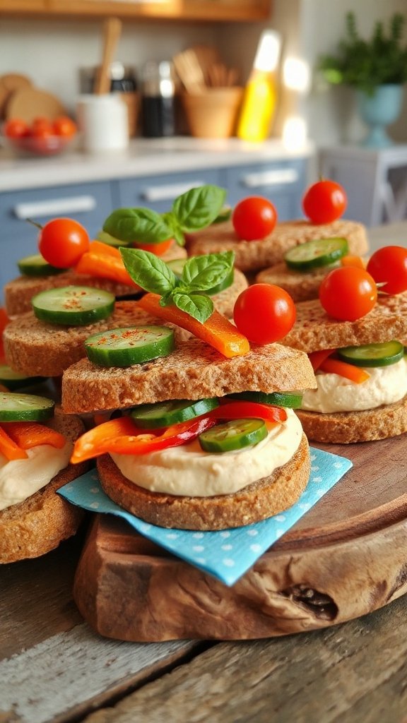 Hummus and Veggie Sandwiches are a fresh and healthy option for a light meal or snack, perfect for those looking to enjoy a satisfying vegetarian or vegan dish. These sandwiches are made with creamy hummus spread across your choice of bread or wraps, topped with an array of colorful vegetables that provide a crunchy texture and vibrant flavor. They are quick to prepare and can be easily customized to include your favorite seasonal veggies.