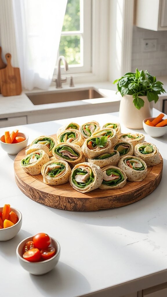 5. Slice the roll into bite-sized pinwheels and serve immediately or pack for later enjoyment. Enjoy these tasty morsels!