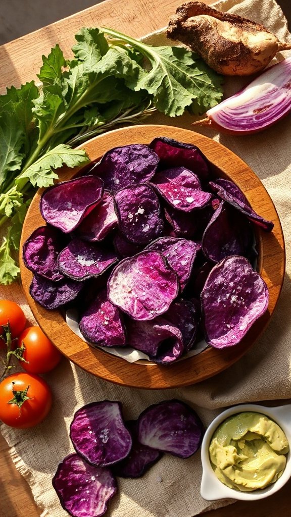Delightful Purple Potato Chips are a colorful and healthy alternative to traditional chips, offering a unique flavor and vibrant hue that makes snacking exciting. These crunchy chips are easy to make, baked to perfection, and can be enjoyed plain or with your favorite dip, making them an excellent addition to any party or a wholesome treat for yourself.