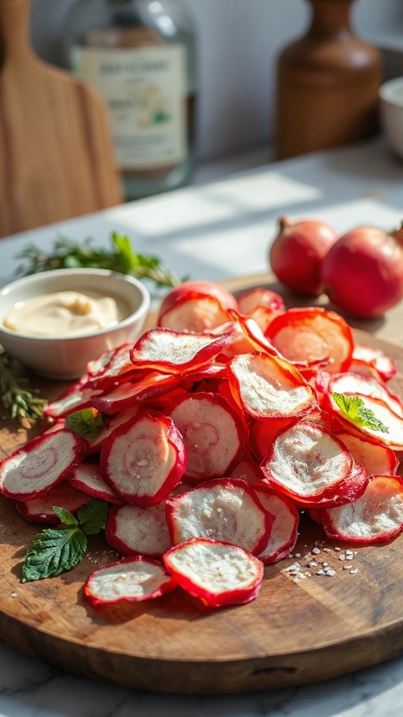 6. Allow to cool slightly before serving, and enjoy your Tangy Radish Chips!