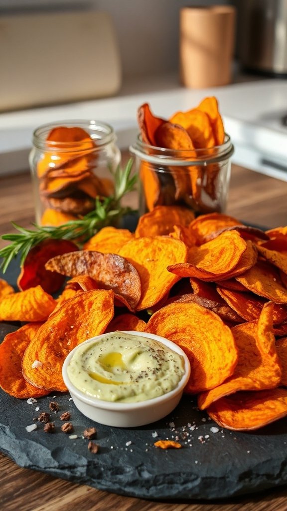 6. Allow to cool slightly before serving, and enjoy your savory sweet potato chips!
