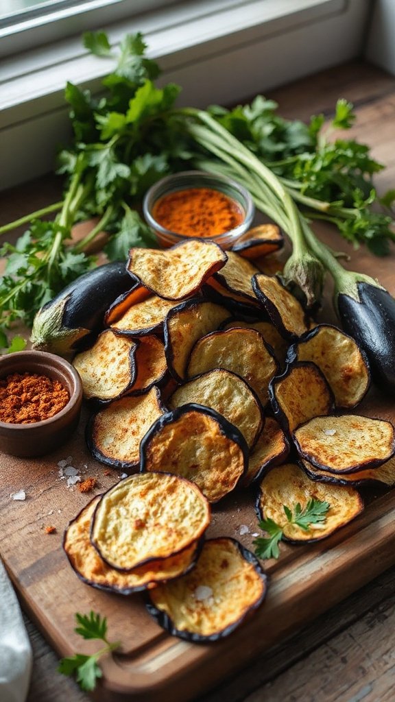 Smoky Eggplant Crisps are a delicious and healthy alternative to traditional snacks, perfect for those looking to enjoy a crunchy treat with a burst of flavor. These baked crisps are infused with smoky spices, offering a delightful blend that’s both satisfying and nutritious. Enjoy them as a snack on their own or paired with your favorite dip for a delightful appetizer.