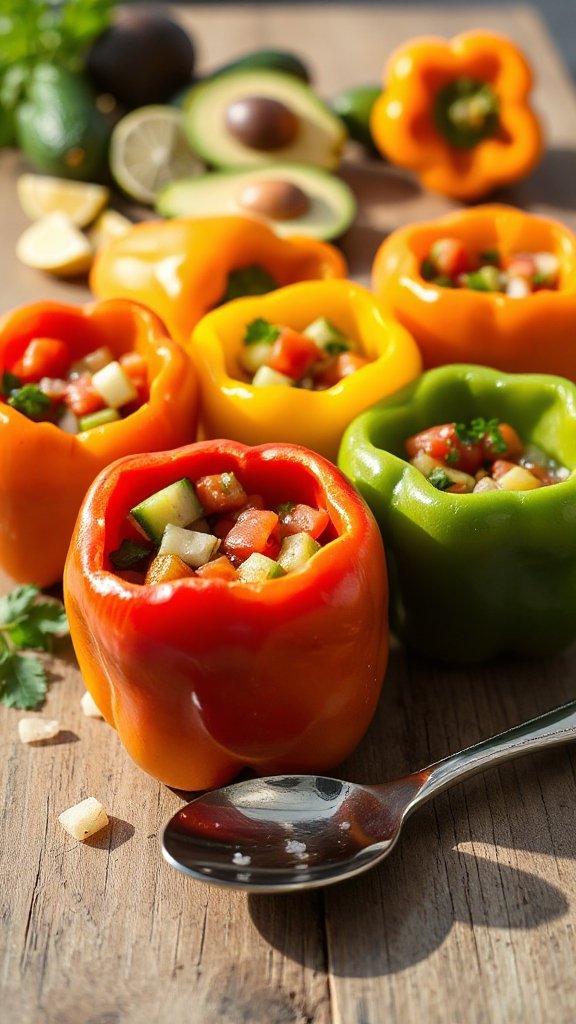 - Spoon the salsa mixture into each bell pepper half, filling them generously.