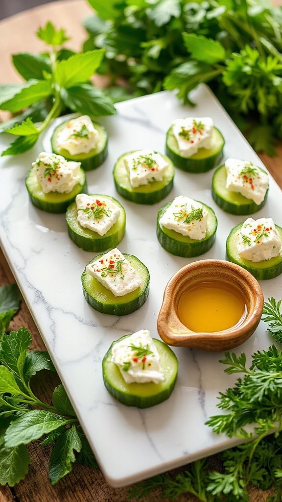 - Arrange the cucumber bites on a serving platter and serve immediately for an invigorating treat!