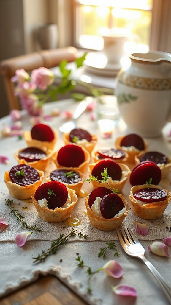 Roasted Beet and Goat Cheese Cups are a delightful and elegant appetizer that showcases the earthy sweetness of roasted beets paired with the creamy tang of goat cheese. Served in individual cups, this dish not only presents beautifully but also combines a variety of textures and flavors, making it a perfect bite-sized treat for any gathering or celebration.