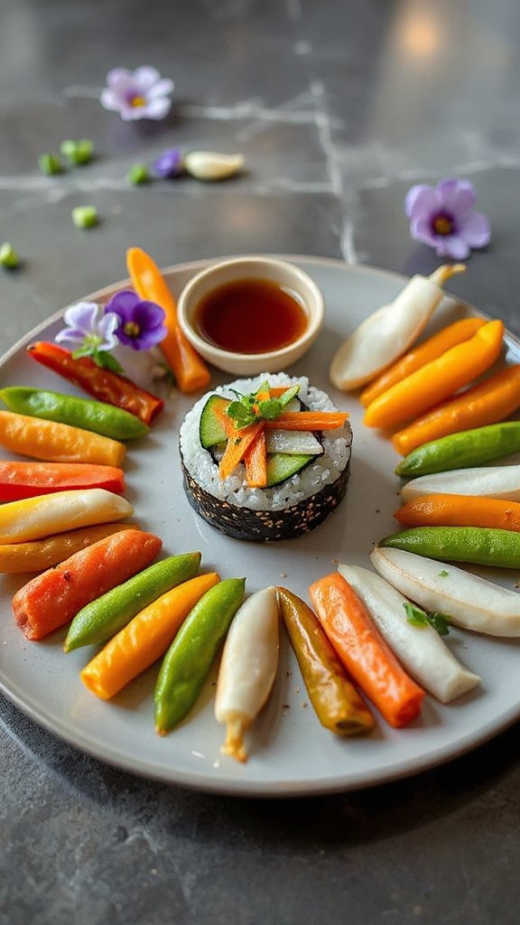 - Slice assorted vegetables into sticks and arrange them on a platter.