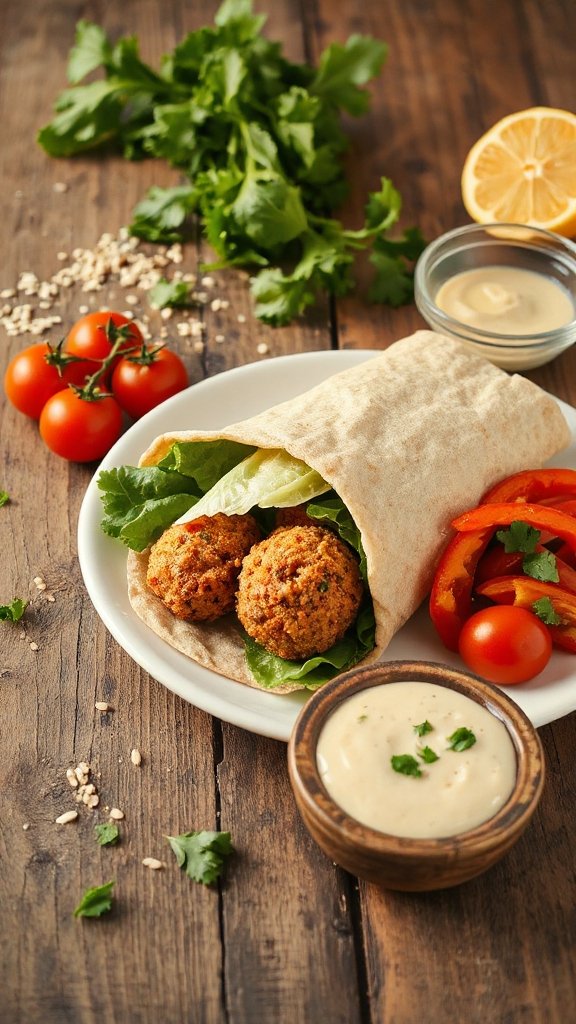 - Roll the tortilla tightly, slice in half, and enjoy your Falafel and Tahini Wrap!