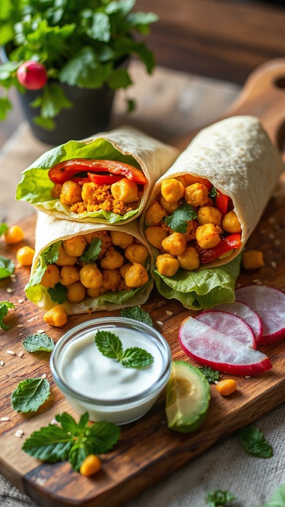 - Roll the tortilla tightly, slice in half, and enjoy your Curried Chickpea Wrap!