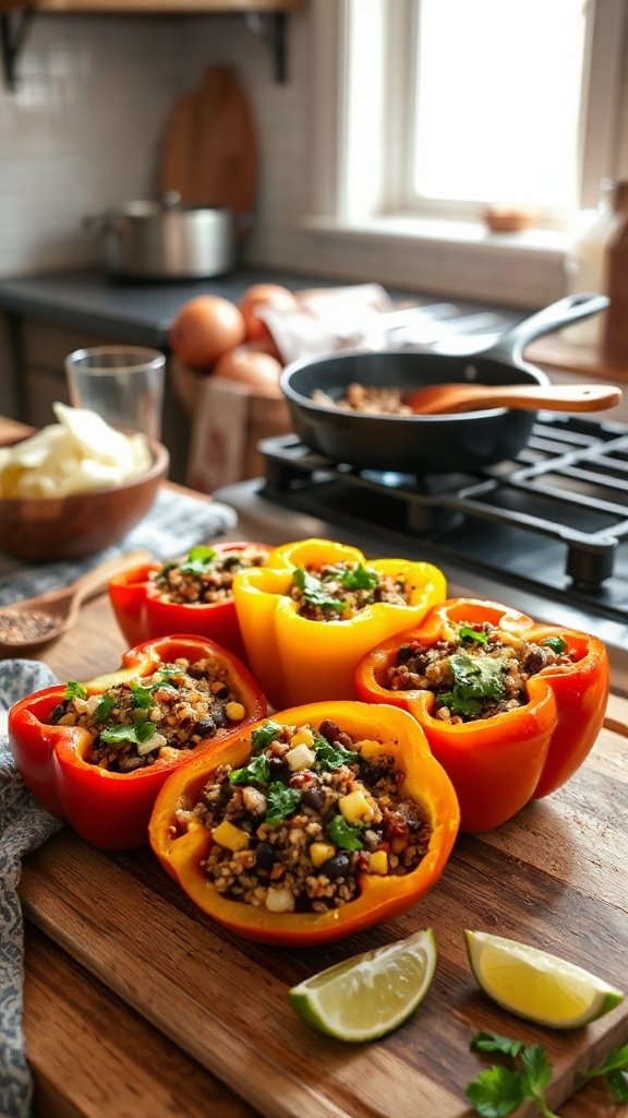 - Stuff the mixture into the prepared bell peppers and top with shredded cheese if desired.