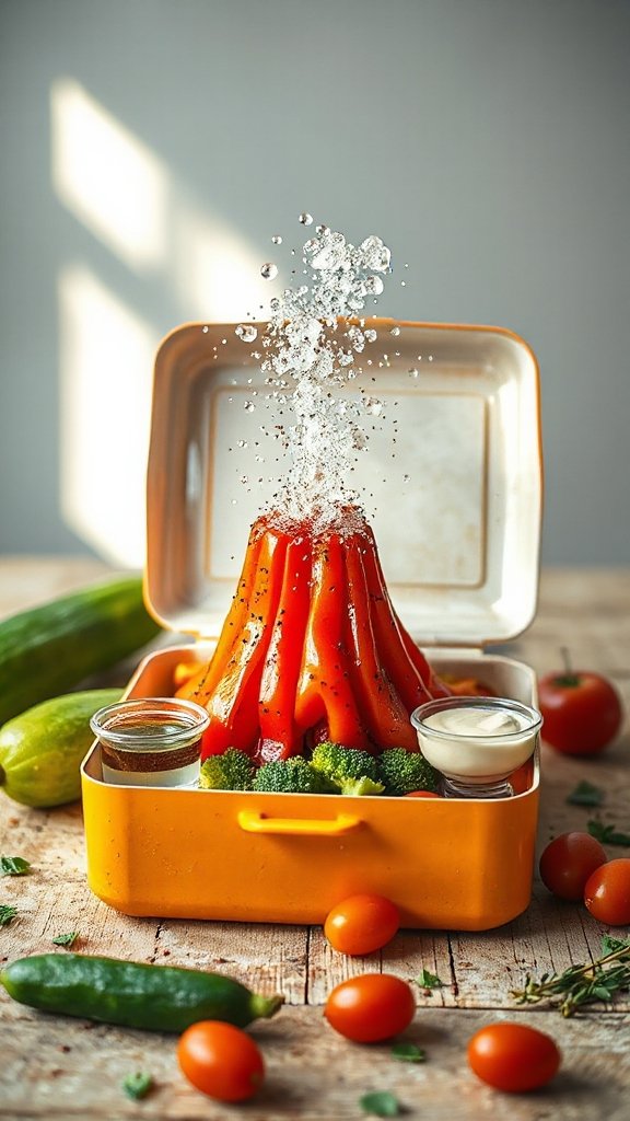 Veggie Volcano is an exciting and interactive science experiment that allows kids to witness a mini eruption using fresh vegetables and baking soda. By combining simple household ingredients, this dish demonstrates the principles of chemical reactions in a fun and edible way. It provides a perfect opportunity for young scientists to explore the concepts of acidity and alkalinity while creating a visually dynamic display with their healthy snack!